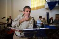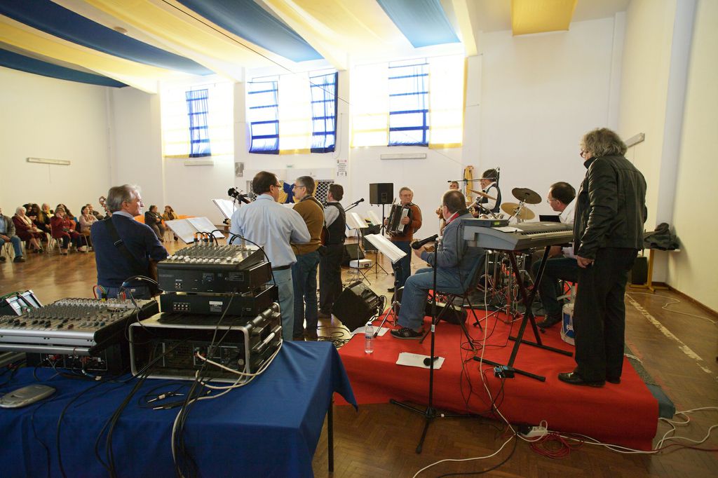 Como é habitual com este grupo, o espectáculo começou com o transporte dos múltiplos instrumentos, afinação, ligação à mesa misturadora, e testes de som. Com 13 músicos, é um processo que demora o seu tempo. Aproveitei para me esgueirar entre os músicos, conseguindo quer retratos quer fotografias em situações naturais.